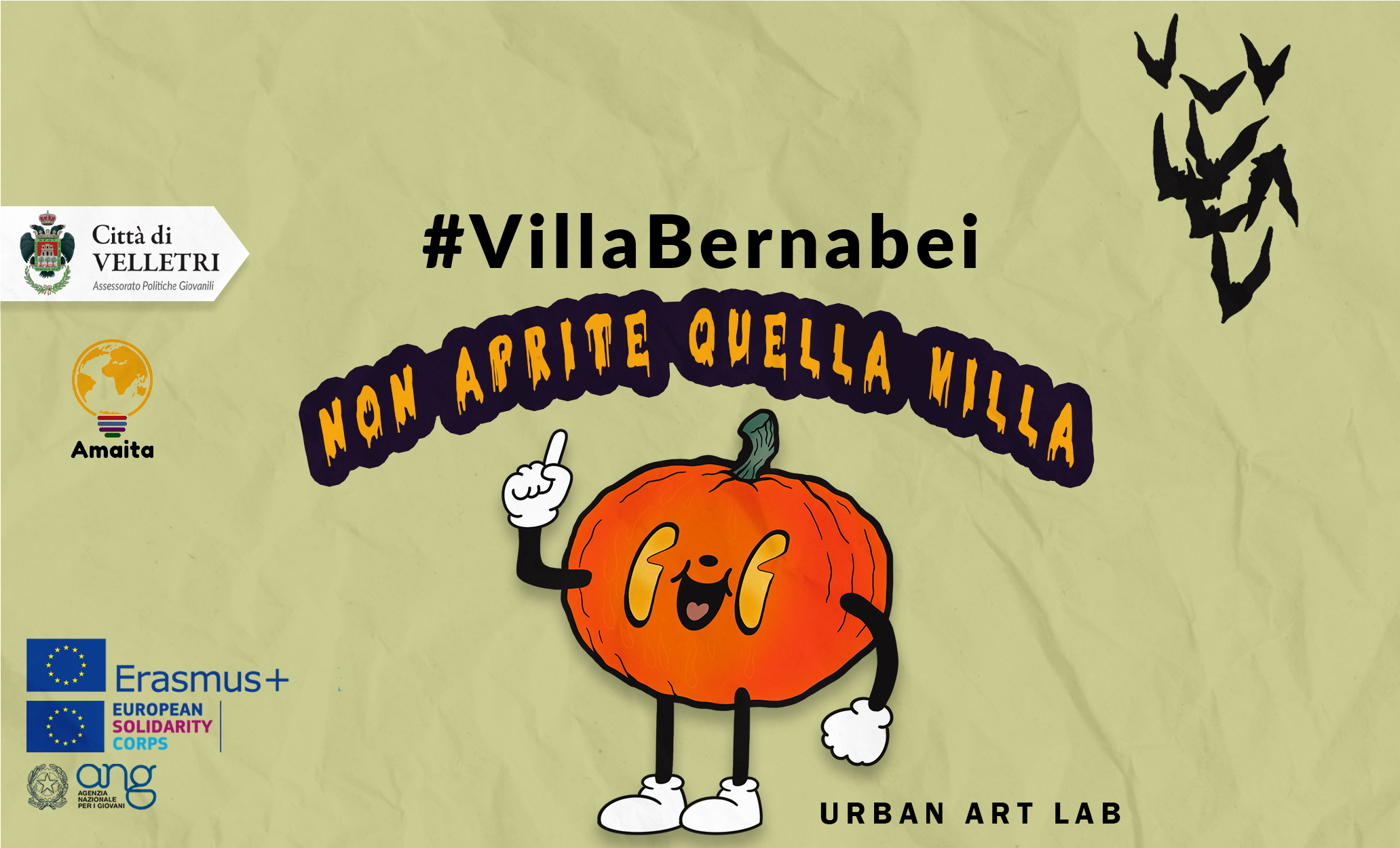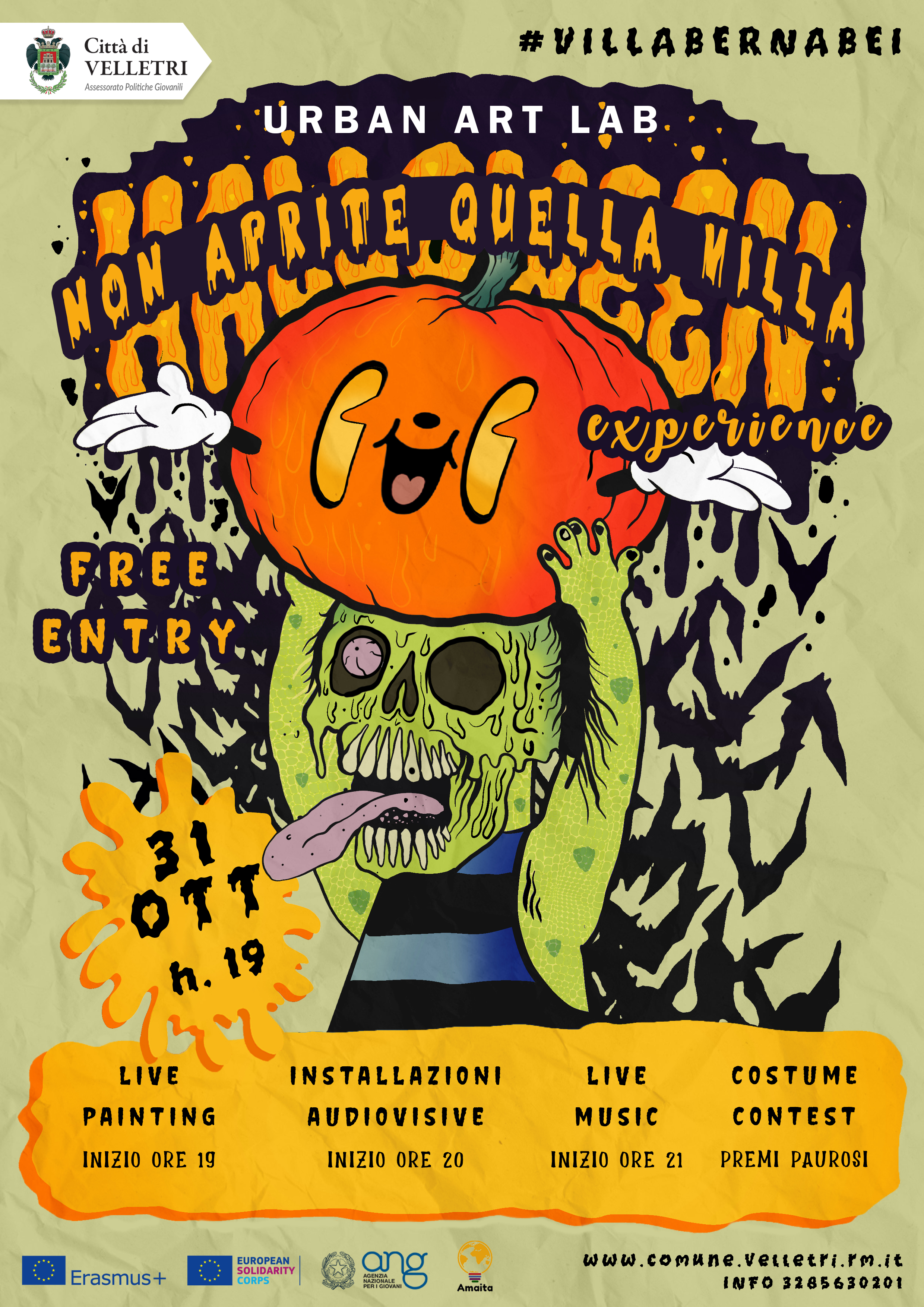 L’Assessorato alle Politiche Giovanili del comune di Velletri comunica che lunedì 31 ottobre p.v. dalle ore 19.00 a Villa Bernabei, si svolgerà l’evento “Non aprite quella Villa - Halloween experience”.