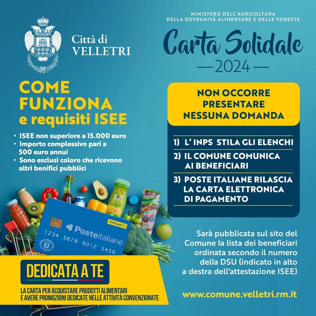 Al Comune di Velletri sono state assegnate n. 1678 carte.