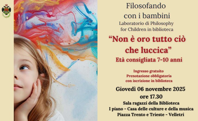 Primo incontro del progetto “Filosofando coi bambini. Laboratorio di Philosophy for Children”, ideato dalla dottoressa Maria Fagiolo in collaborazione con la Biblioteca comunale di Velletri.